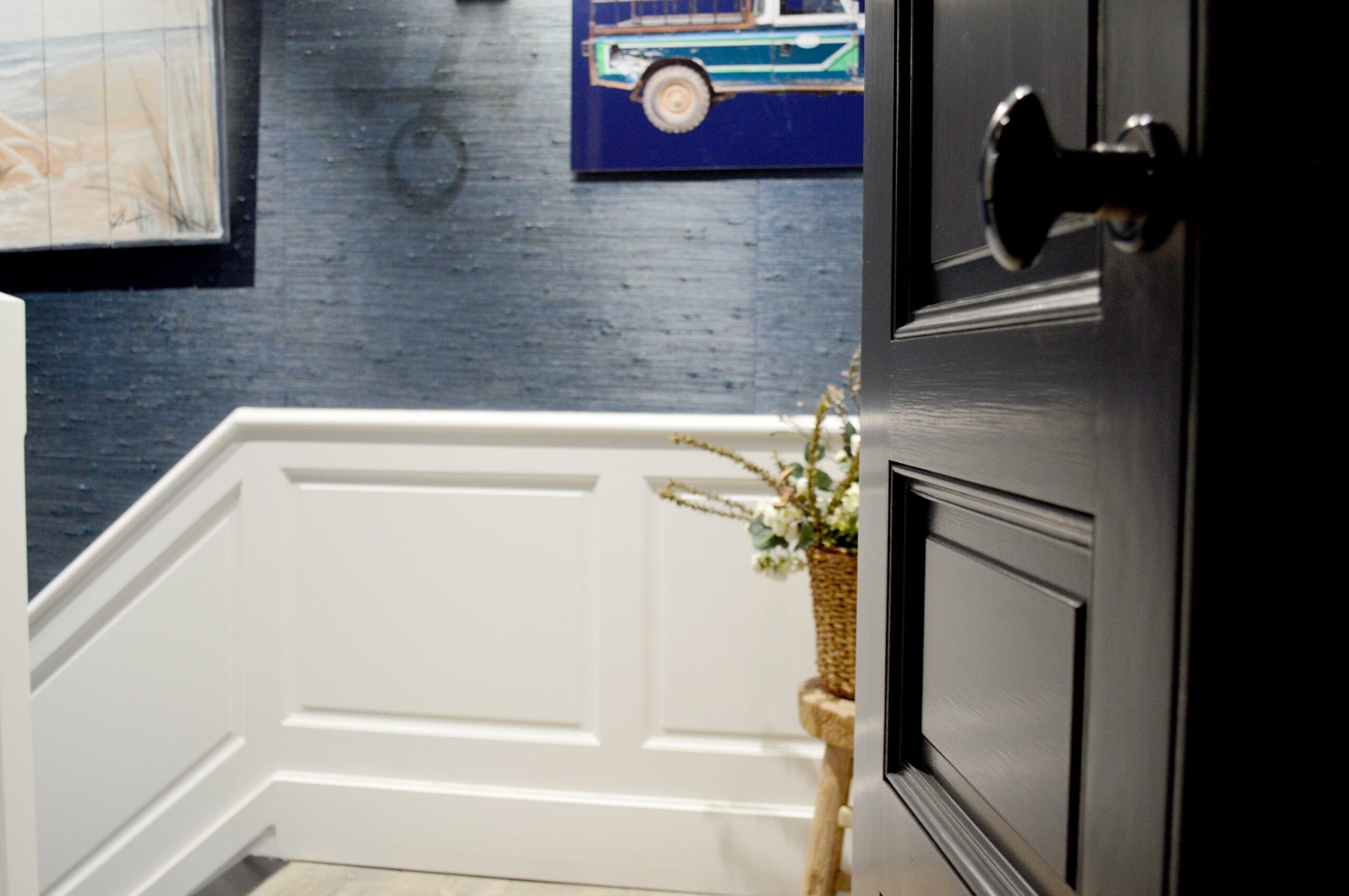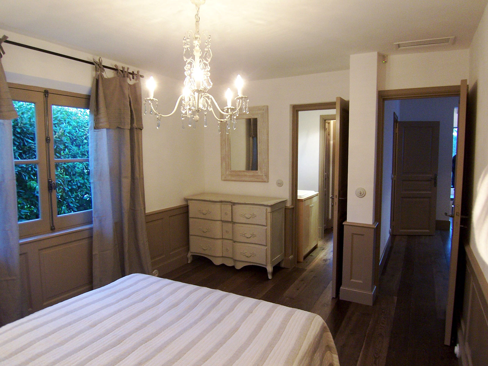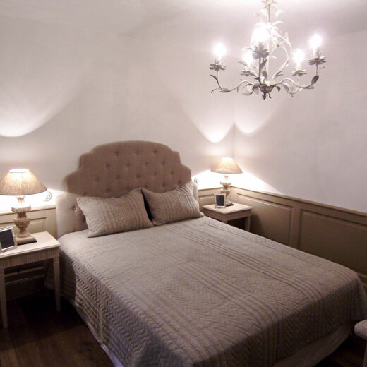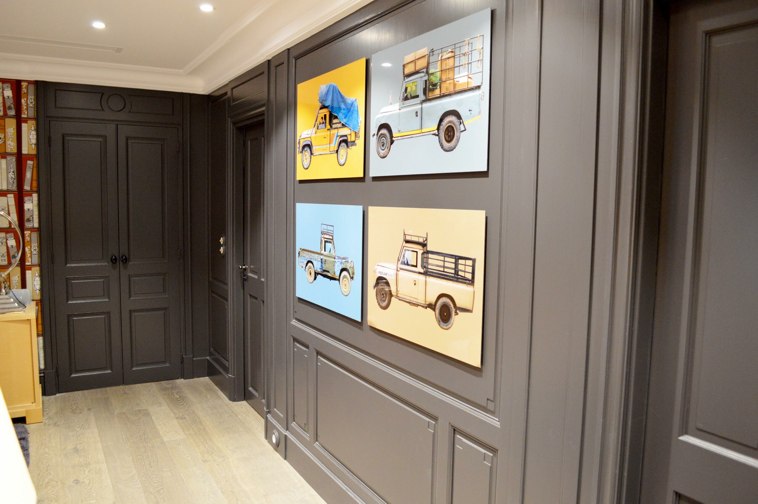 Aménagement de tête de lit bois peint