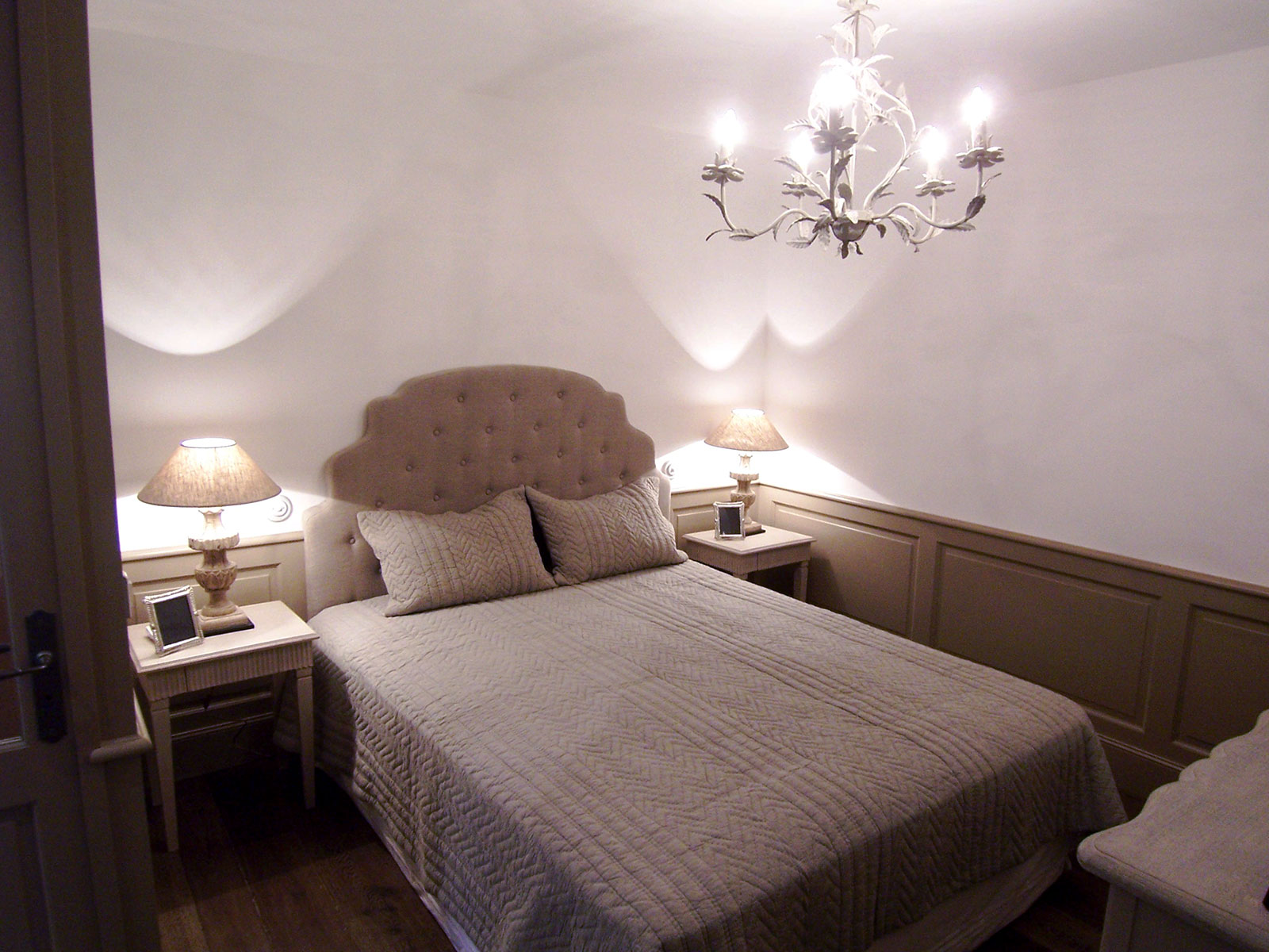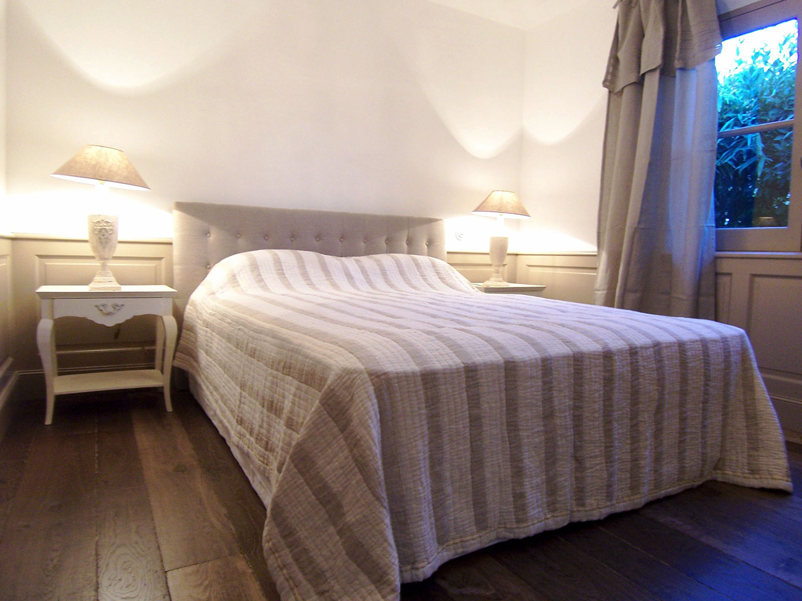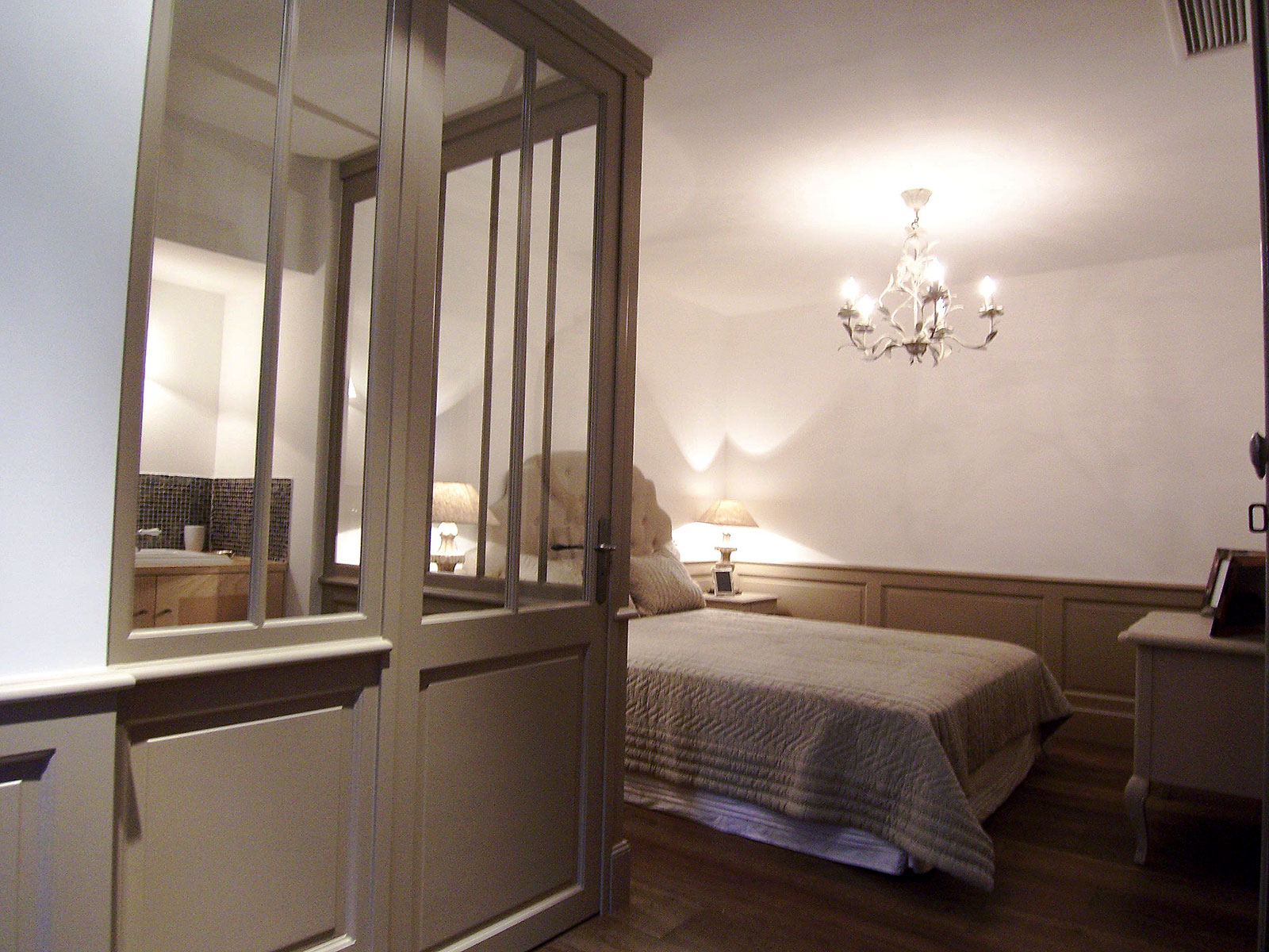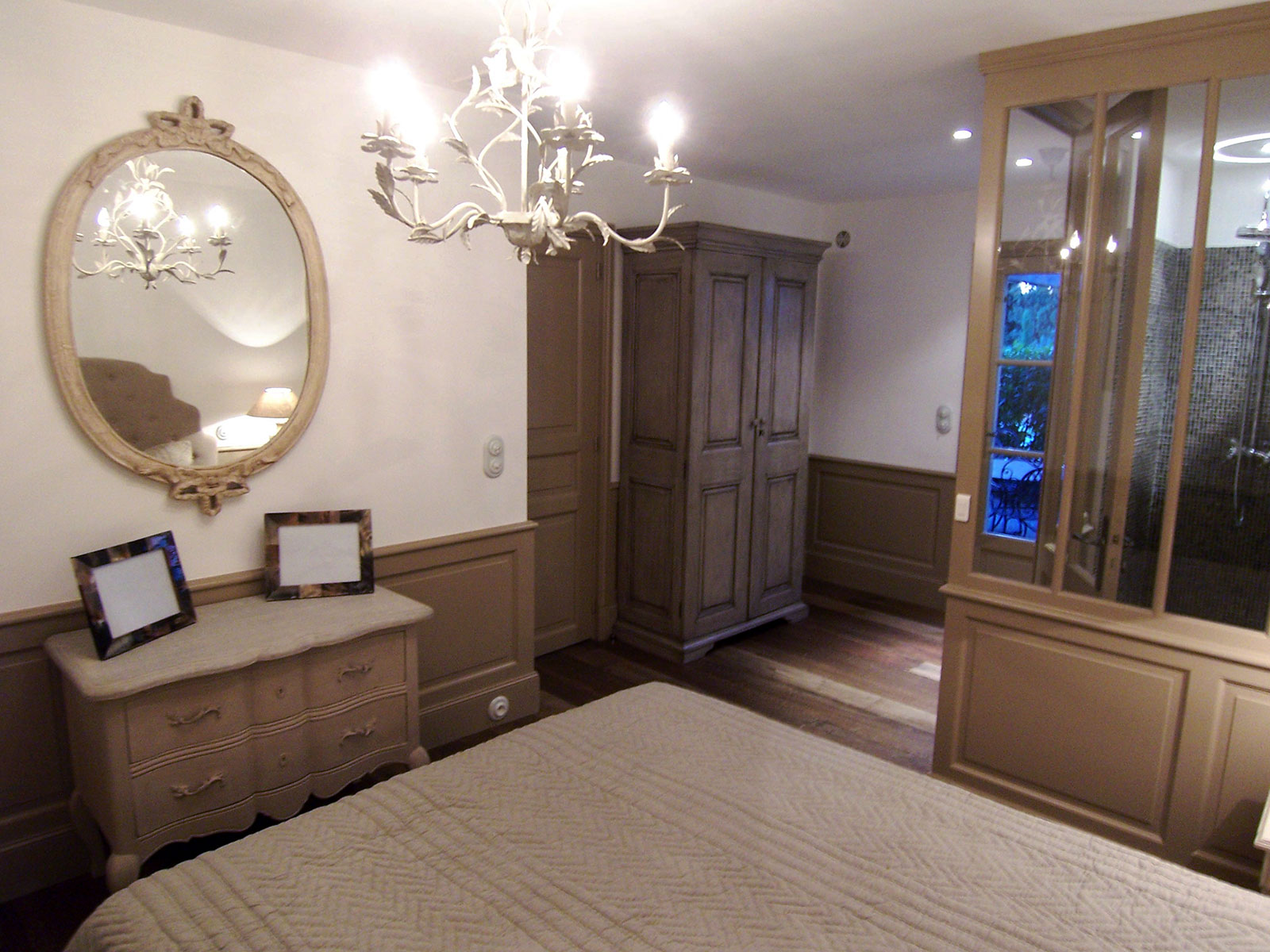 Aménagement de tête de lit bois peint